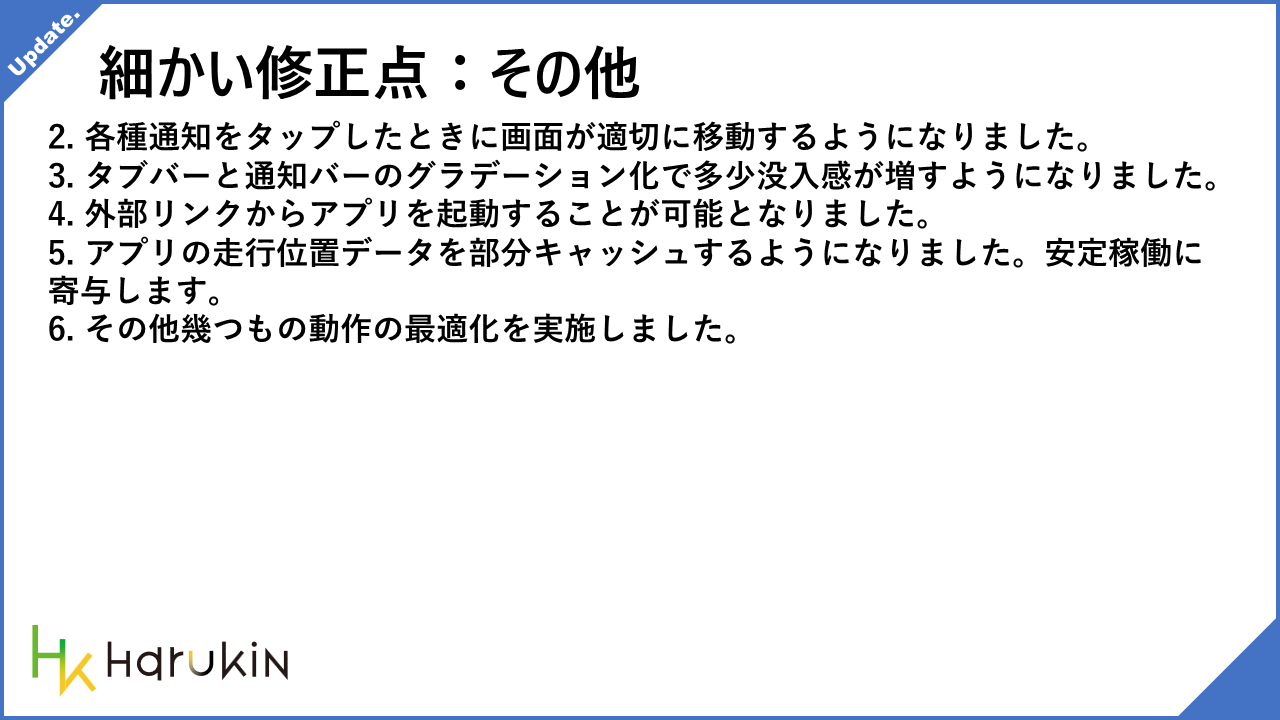 以上、今回は見た目の刷新だけではなく、通知、外部連携、ホーム画面活用、現在地追従まで一気に守備範囲を広げた更新となりました。挙動が大きく変わった箇所も多いため、しばらくは試しながら慣れてもらえればと思います。
