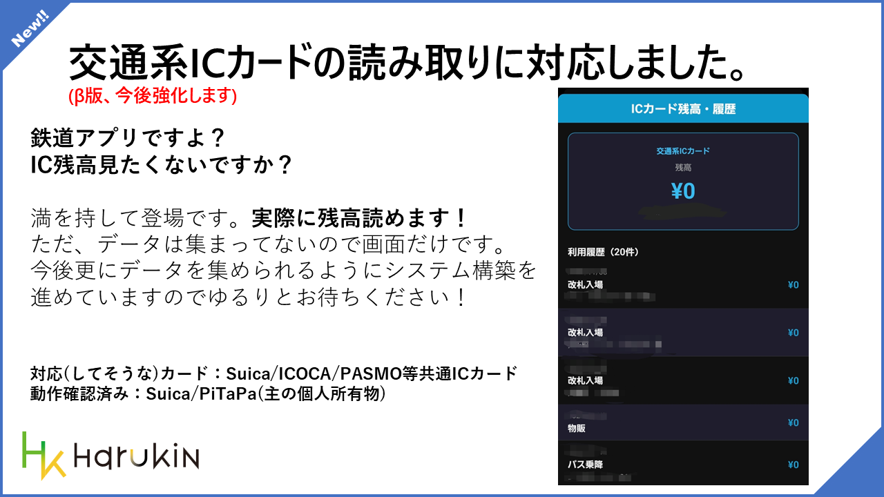 現時点ではまだβ版の扱いで、実際に残高は読めるものの履歴データの活用や周辺機能はこれから順次強化していく段階です。そのため、まずは「読み取り画面が使えるようになった」と受け取って頂ければと思います。